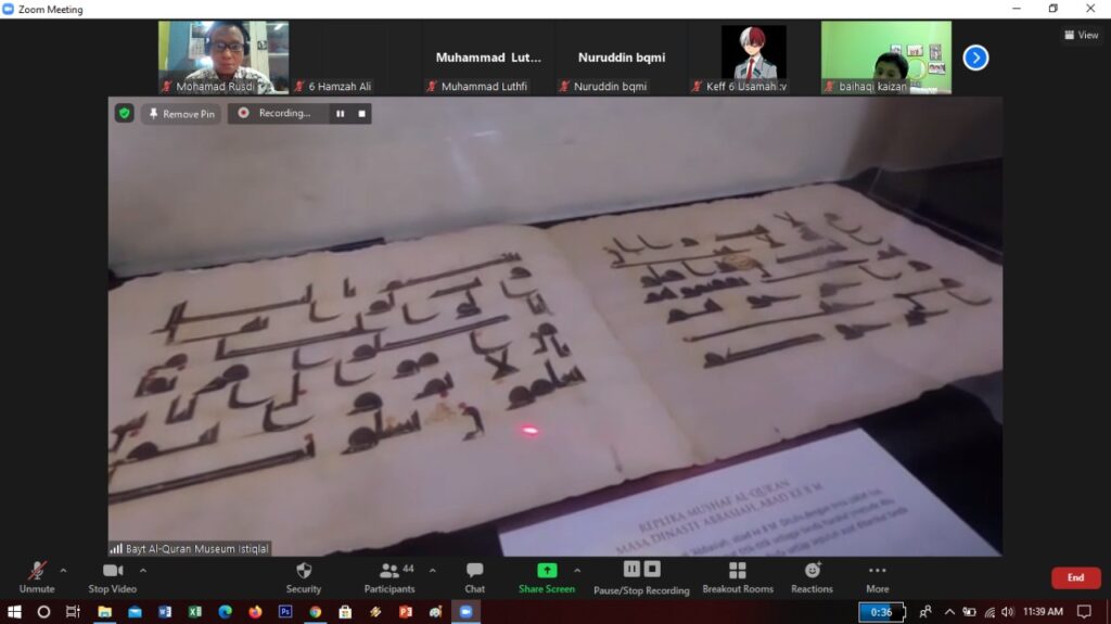 Kunjungan di Bayt Al Qur’an, murid-murid sekolah Islam jakarta barat SD Exiss Abata kelas 6 dikenalkan dengan sejarah penulisan mushaf dari awal para Sahabat Rasulullah menuliskan Al Qur’an sampai penulisan mushaf oleh ulama-ulama besar di negara ini. Kunjungan ke Museum Bayt Al Qur’an dilakukan untuk menambah ghirah untuk mempelajari Al Qur’an dan juga persiapan Imtihan Al qur’an dari Sekolah Islam di Jakarta Barat.