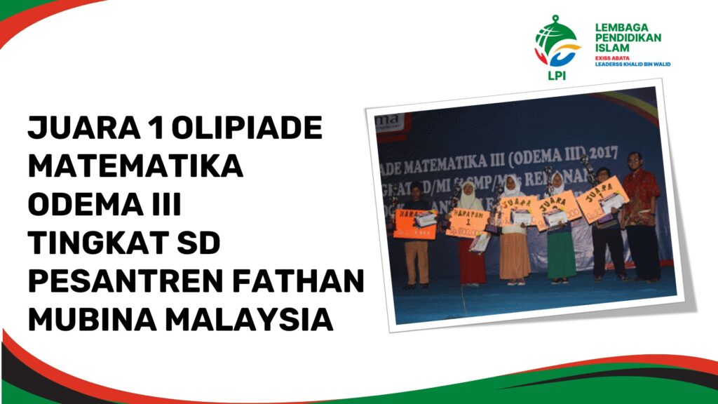 JUARA 1 OLIPIADE MATEMATIKA ODEMA III TINGKAT SD PESANTREN FATHAN MUBINA MALAYSIA