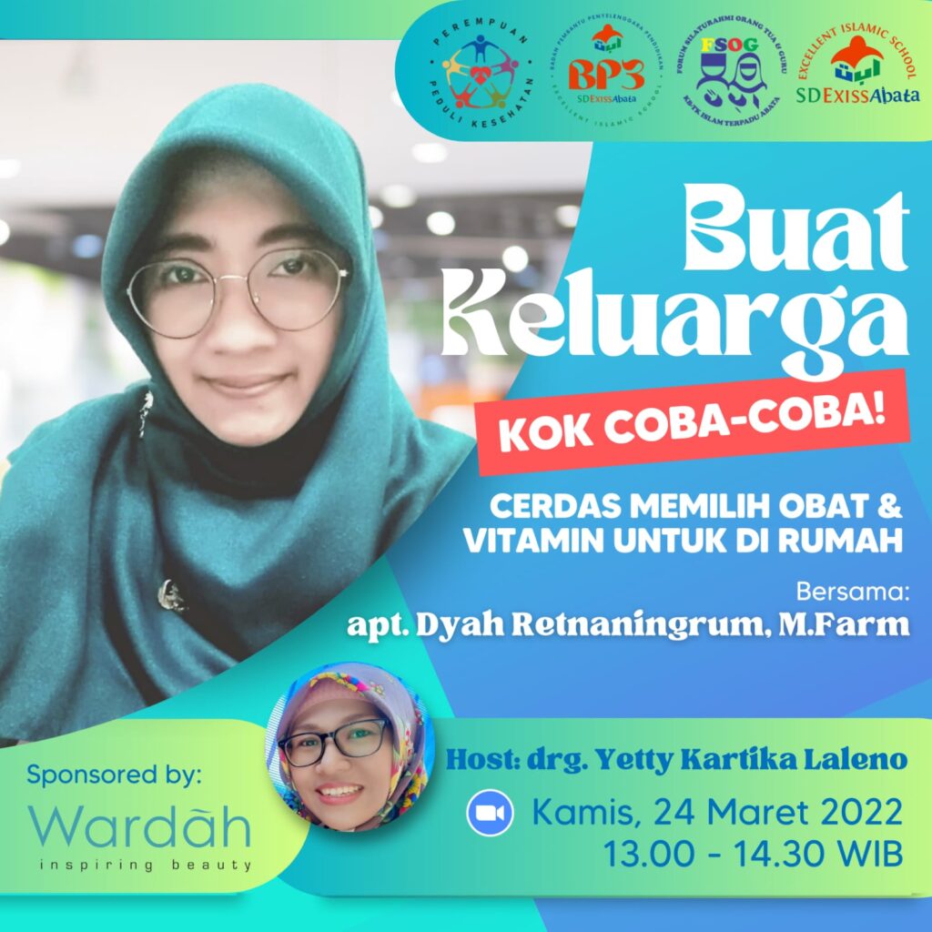 Buat Keluarga kok Coba – Coba ! Webinar Kesehatan : Cerdas Memilih Obat dan Vitamin di Rumah Bersama apt. Dyah Retnaningrum. M. Farm.