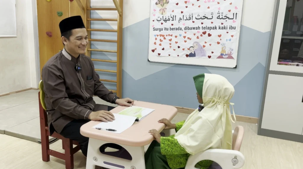 Tes ini dipandu oleh Ustadz Muhammad, S.Pd.I, yang dengan penuh kesabaran dan dedikasi membimbing Safaa Indhageelle dalam menguasai materi yang diuji. Dengan fokus dan semangat tinggi, Ananda Safaa Indhageelle berhasil Dengan fokus dan semangat, membaca huruf hijaiyah berharakat fathah. menunjukkan peningkatan yang luar biasa dalam kemampuan membaca Al-Qur’an.
